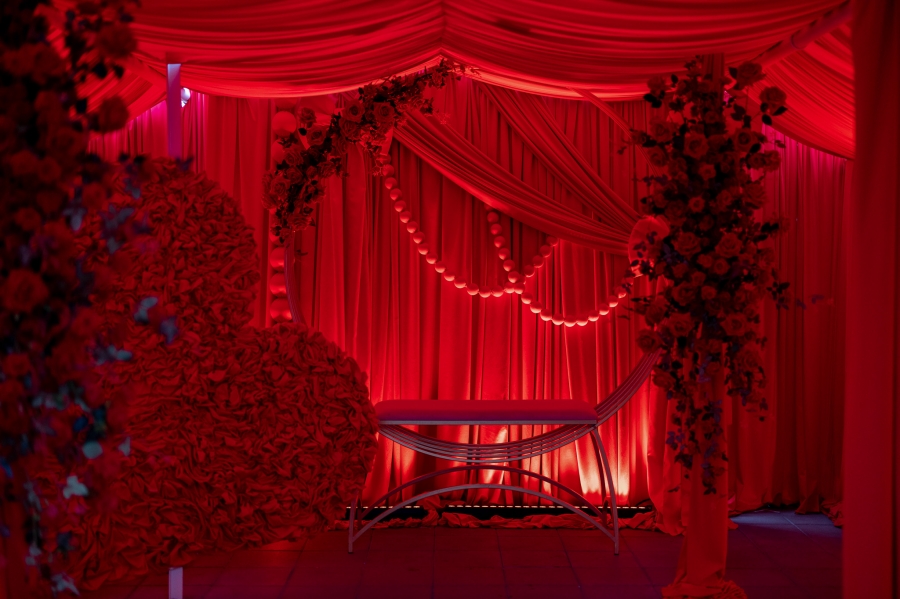 Specjalnie z myślą o zakochanych jedna z naszych szklarni przeszła całkowitą metamorfozę. Stworzyliśmy intymną, pełną ciepła strefę, która jest idealnym tłem dla Waszych wspólnych chwil. W nowej aranżacji dominują eleganckie odcienie czerwieni, które harmonijnie współgrają z egzotyczną roślinnością.