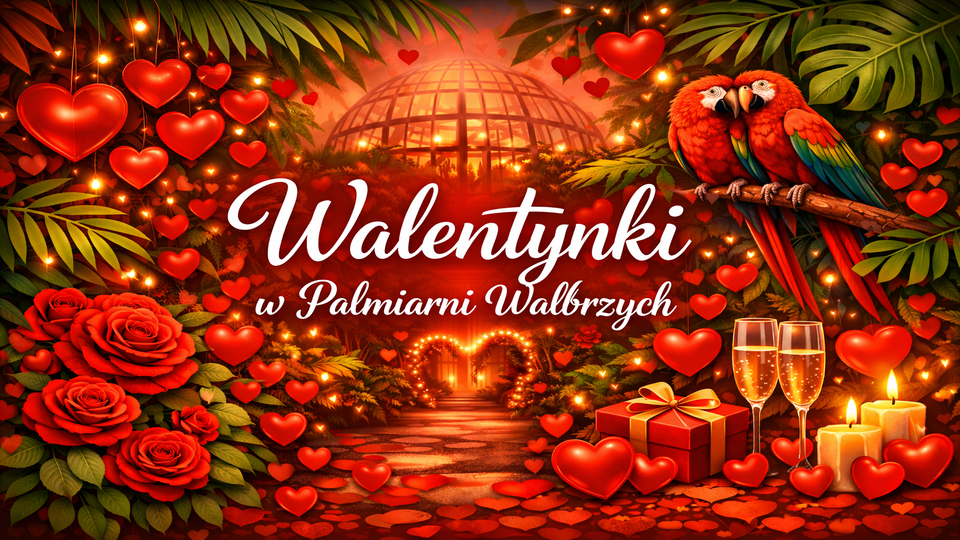 Poczuj magię uczuć w najbardziej egzotycznym zakątku Wałbrzycha! W tym roku Walentynki w Palmiarni zapowiadają się wyjątkowo. Przygotowaliśmy dla Was romantyczną przestrzeń, w której miłość rozkwita pośród bujnej zieleni, nastrojowego światła i unikatowych dekoracji.